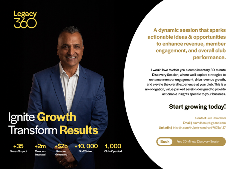 Pele Ramdhani brings over 35 years of impact to the industry, having impacted over 2 million members and generated more than $2 billion in revenue. With experience training over 10,000 staff and operating 1,000 clubs, he now offers actionable insights to enhance revenue and member engagement through Legacy 360.